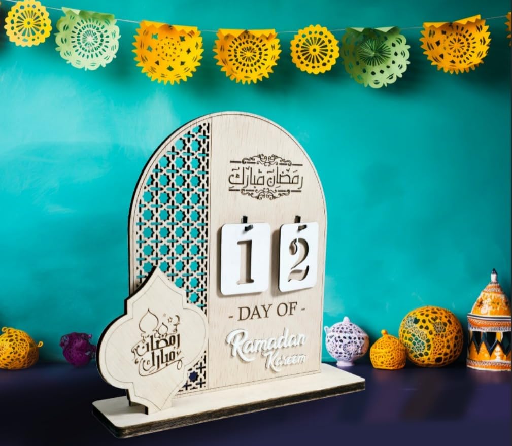 Made from high-quality wood, this Islamic décor piece is perfect for tabletops, shelves, prayer spaces, offices, and living rooms. It’s a wonderful way for families and children to engage with the holy month while creating a festive and spiritually uplifting atmosphere at home.
