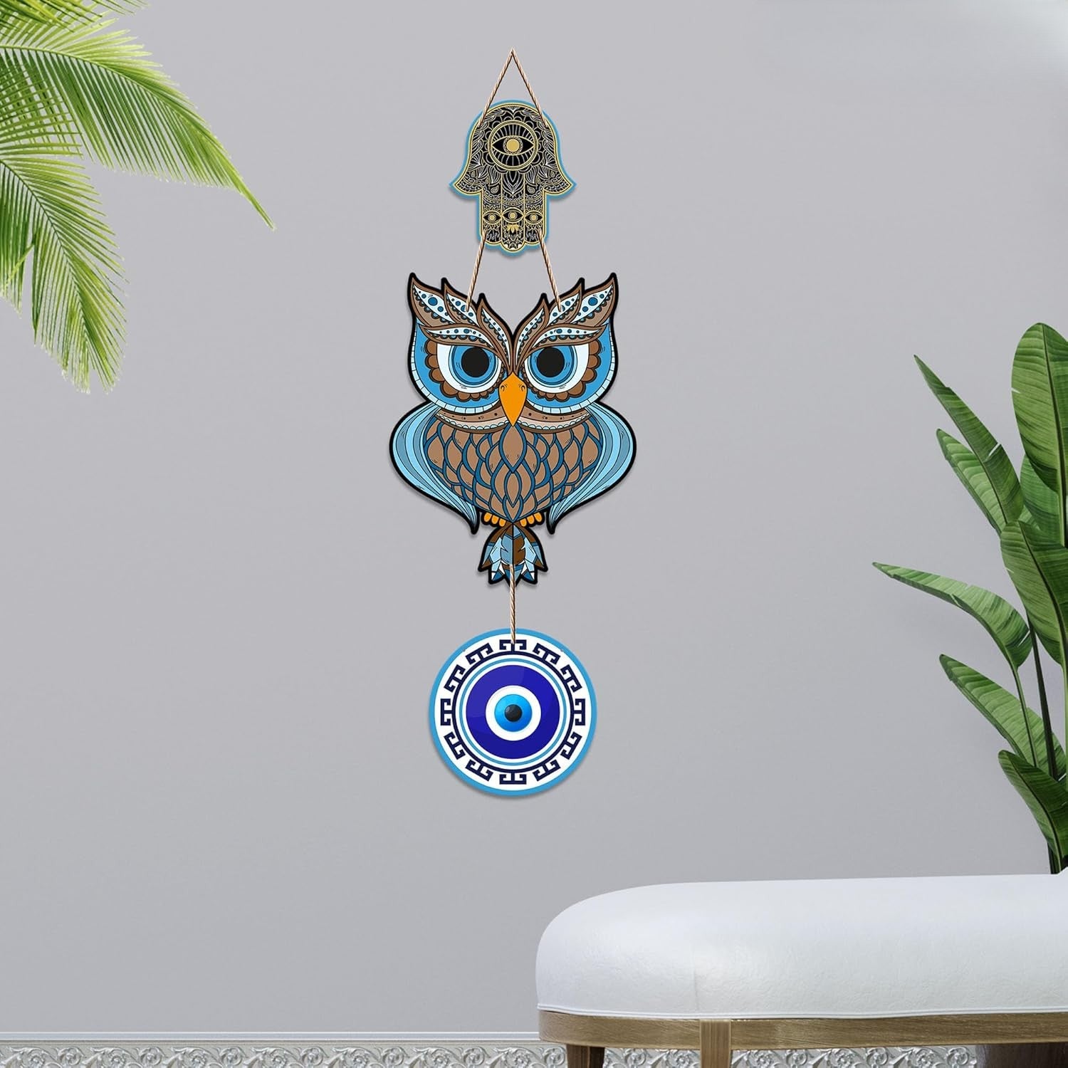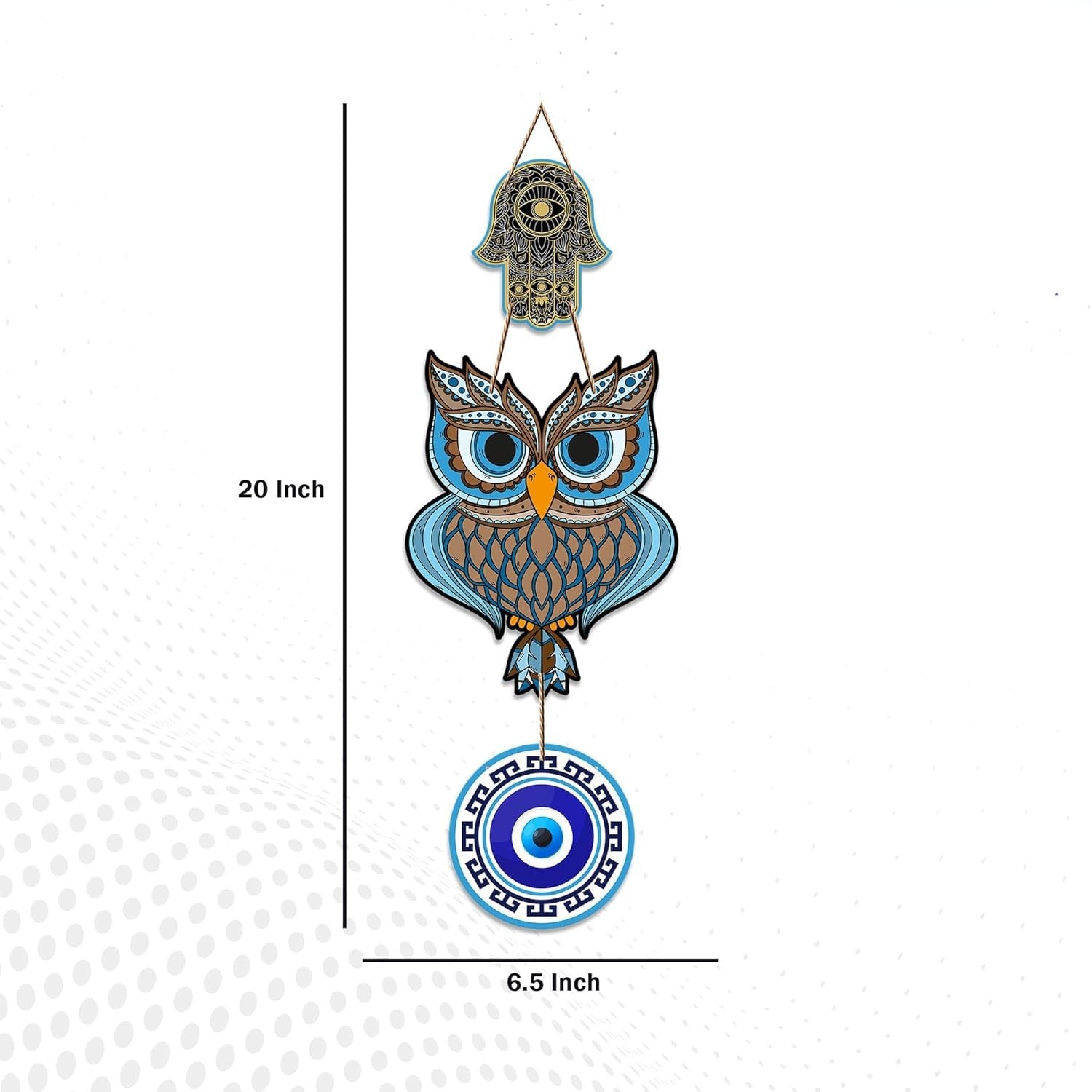Bring wisdom, luck, and prosperity into your home with the Fashcraft Owl Shape Wooden Wall Hanging featuring a Hamsa Hand design. The owl symbolizes intelligence and protection, while the Hamsa Hand is believed to attract positive energy and ward off negativity—making this piece both meaningful and stylish.