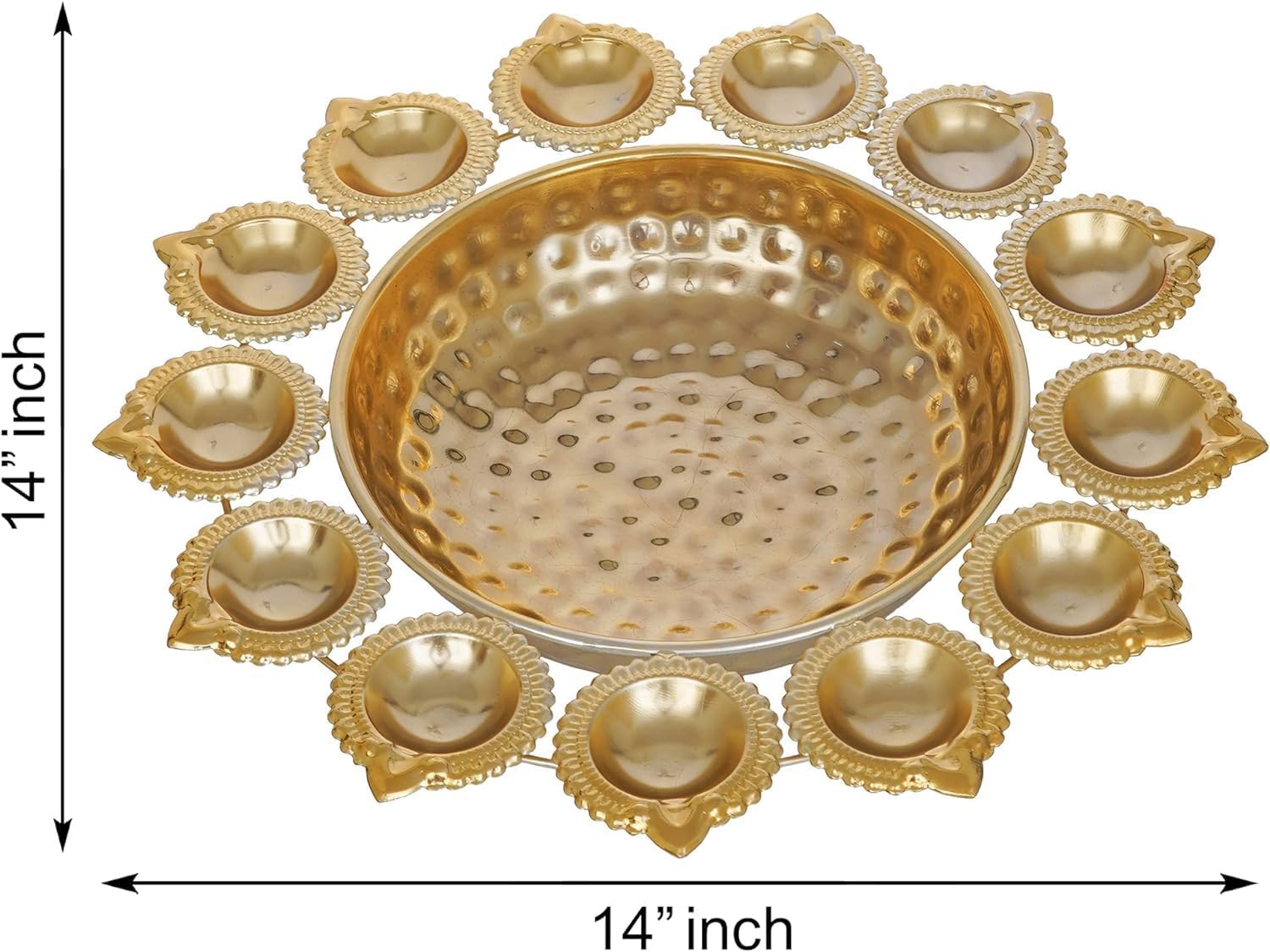 14 Inch Gold Diya Shape Urli Bowl – Handcrafted Metal Floating Flower & Tealight Candle Holder for Diwali, Puja & Table Decor