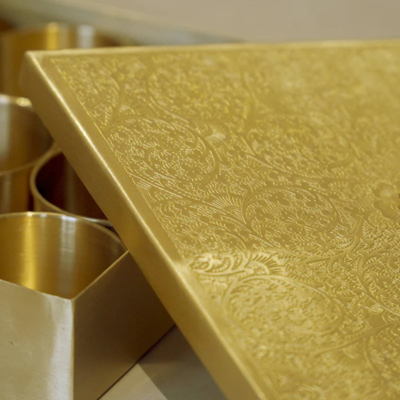 Each piece is handcrafted by skilled Indian artisans, giving it a unique character and a refined matte finish. Its elegant square design makes it suitable for both home kitchens and professional restaurant use, adding a touch of heritage and sophistication to any setting.