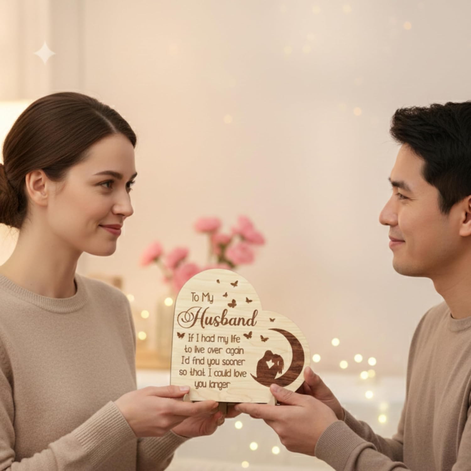 Designed with a sturdy wooden stand, it is ideal for display on bedside tables, shelves, office desks, or living room spaces. Whether you’re gifting it to your wife, partner, or a special couple, this customizable keepsake makes every occasion unforgettable.