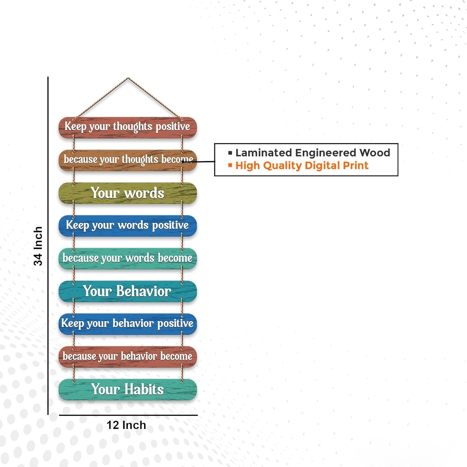 Bring positivity and elegance into your home with Fashcraft Positive Quote Printed Wooden Wall Hanging. Thoughtfully designed to inspire, this modern wall décor piece adds a calming and motivational touch to your living space, office, or hallway.
