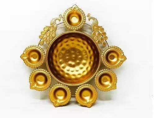 Add timeless elegance to your space with this beautifully crafted Peacock Design Urli Bowl. Inspired by traditional Indian artistry, this 10-inch decorative diya bowl features intricate metallic detailing and a graceful peacock motif that symbolizes beauty, prosperity, and celebration.